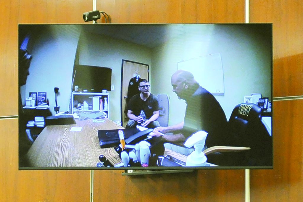 An officer’s body camera footage was played in court showing the conditions around the house and the scene inside. Dublin police Sgt. Lee Washburn talked about the pictures he took of the scene and of the truck that was recovered from Wilkinson County where Whitaker was found and arrested. Washburn described the various guns, knives, socks and other items discovered in the truck, including the handgun the was used in the shooting.