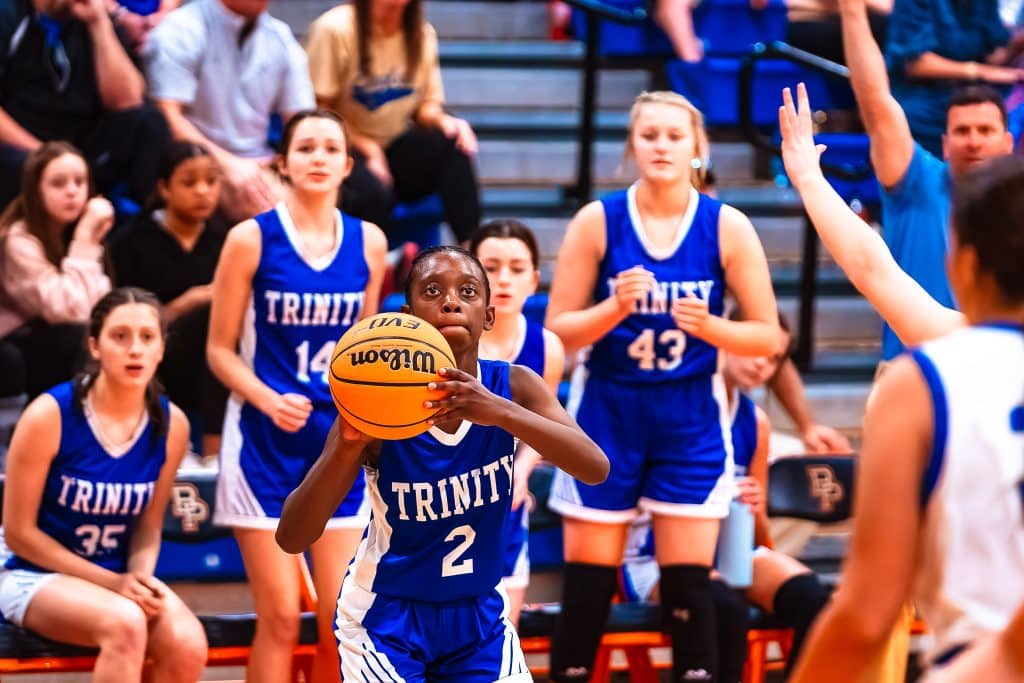 Trinity – playing its first basketball in about two weeks coming off a longer-than-planned international mission trip – jumped all over a Brentwood team playing without its under-the-weather center Bailey Barron, and led wire-to-wire on the way to a 17-point win.