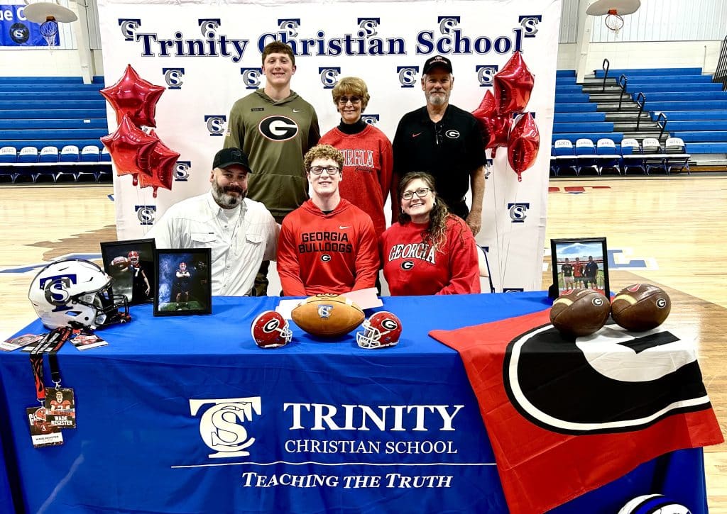 With the entire Trinity Christian School student body – numbering a few hundred – assembled in the Clyde Evans Fieldhouse bleachers, Trinity head coach Bruce Lane couldn’t pass up the chance to tease his Georgia-bound punter Wade Register about how much larger a crowd in Athens, and in stadiums around the rest of the SEC, he’ll soon be playing in front of every Saturday.