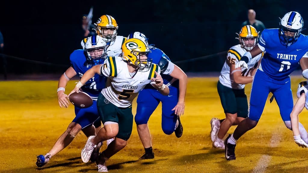 This past Friday night’s home debut looked much different on both sides of the ball as Trinity overcame the wet conditions to roll past Gatewood 24-6 at Cleve Warnock Field.